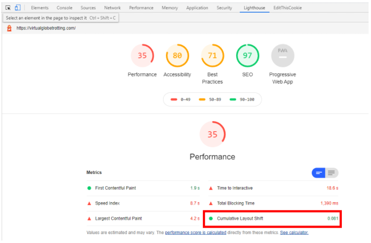 Если вы хотите просматривать веб страницы и в реальном времени наблюдать изменение CLS, попробуйте этот простой скрипт для Tampermonkey и расширение для Chome — Web Vitals.