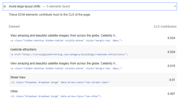 Кроме CLS верхнего уровня, вы можете просмотреть составляющие его сдвиги: