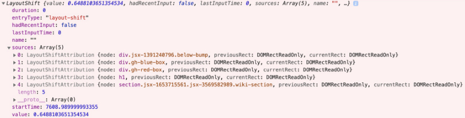 Сдвиг разметки это не всегда плохо. Например если пользователь нажимает на кнопку на одностраничном сайте, это может быть ожидаемым поведением. Каждое событие layout-shift имеет флаг hadRecentInput, сообщающий, был ли ввод от пользователя за 500мс от сдвига. Если это так, то этот сдвиг разметки, вероятно, можно исключить из CLS.