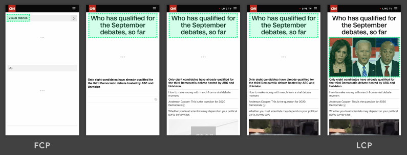В приведенном выше примере, каждое событие largest-contentful-paint представляет текущего кандидата на роль LCP. В общем случае, значение startTime для последнего события является значением LCP, однако это не всегда так. Не все события подходят для измерения LCP.
